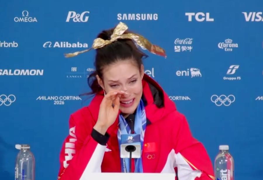 赛后新闻发布会,谷爱凌来得有些晚。前面的几个问题她回答得仍旧利落——谈兼项、谈逆转、谈如何扛住压力。直到最后,她像突然被什么拉回现实,停顿了片刻,轻声说了句“抱歉……”。话音很轻,眼泪却一下涌了出来,现场的其他声音也随之沉了下去:“我刚刚得知外婆去世了。”