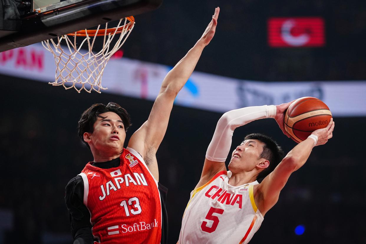 当地时间2月26日,在日本冲绳举行的2027年国际篮联篮球世界杯亚洲区预选赛第一阶段B组比赛中,中国队对阵日本队。