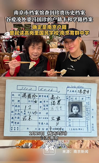 谷爱凌的外婆冯国珍是上海交大高材生、原交通运输部高级工程师,曾赴美照顾谷爱凌的生活,从小教她说汉语、吃中餐,每年带她回北京感受中国文化。