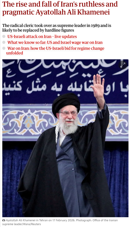 △《卫报》报道,在美以发动军事打击前,中央情报局评估,如果伊朗最高领袖在袭击中丧生,取代他的很可能会是伊斯兰革命卫队的强硬派