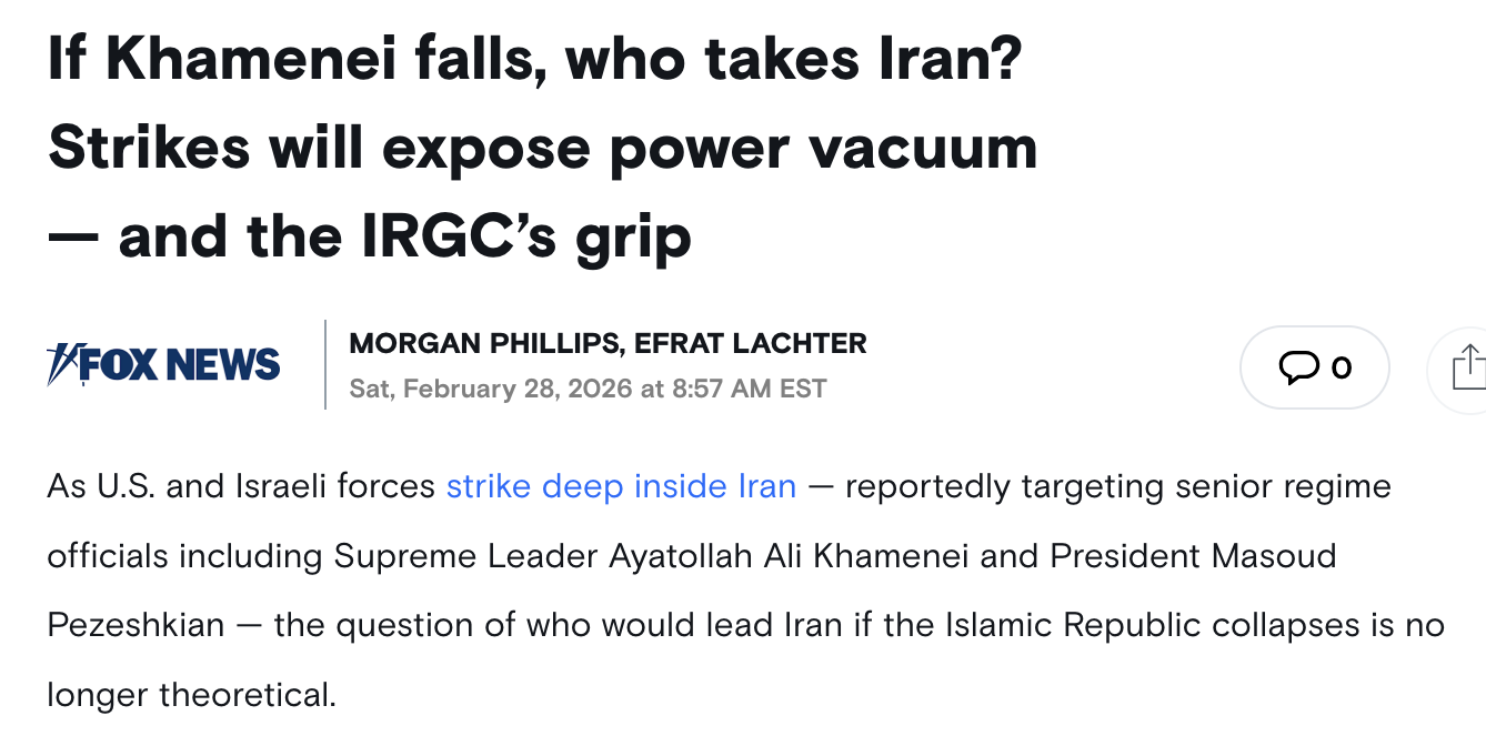 △福克斯新闻报道,目前没有明显的继任者能够接管伊朗