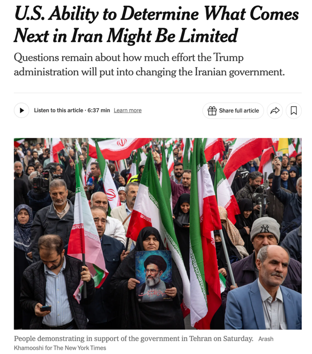 △《纽约时报》报道,美国决定伊朗下一步走向的能力可能有限