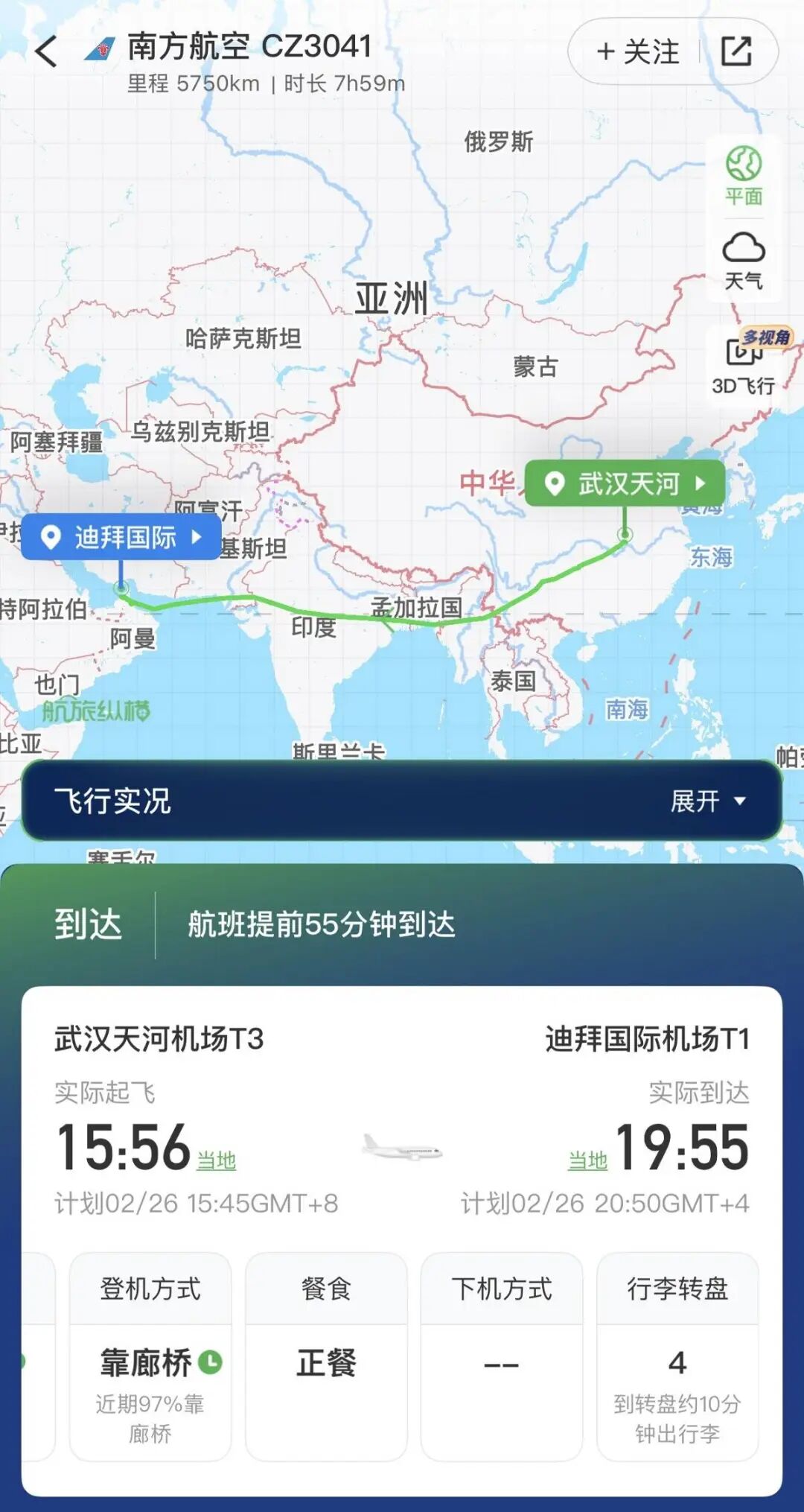 2月26日,武汉直飞迪拜航班仍正常执行。