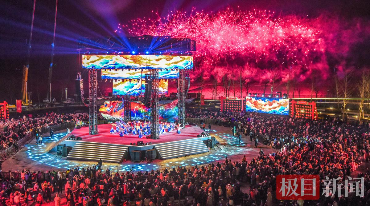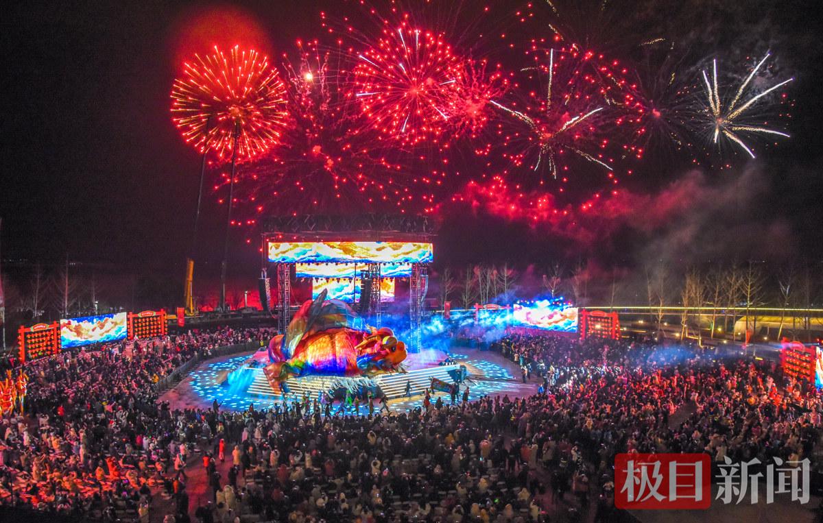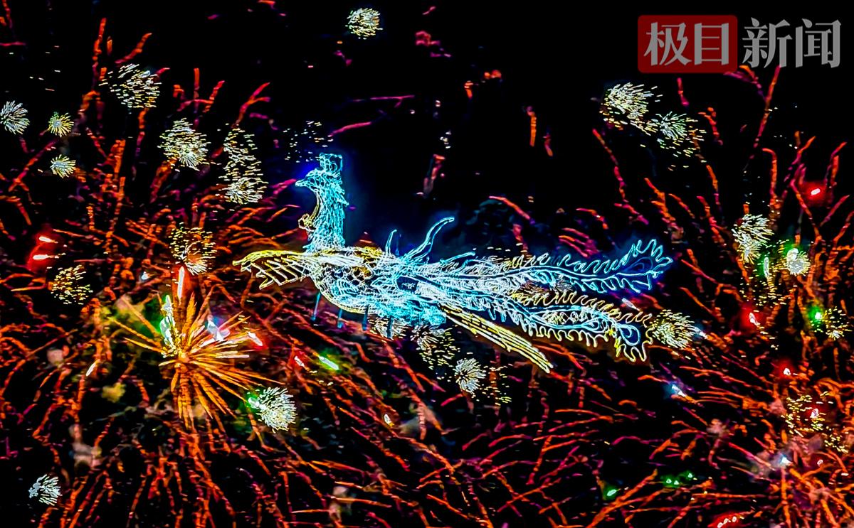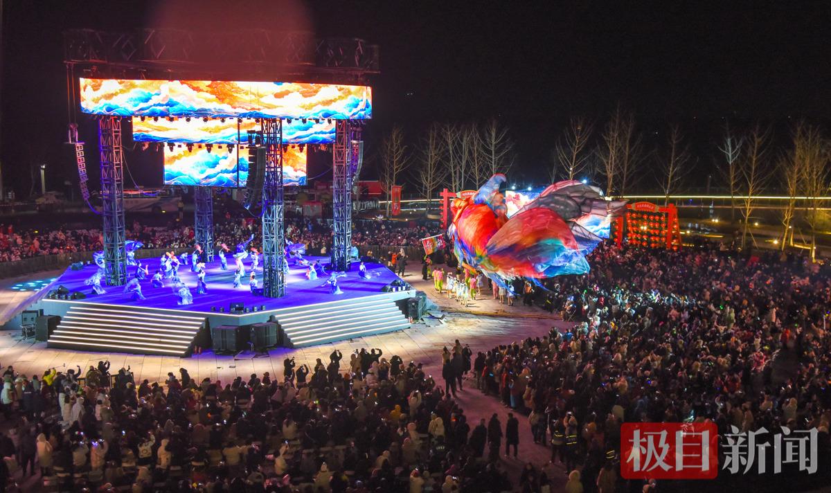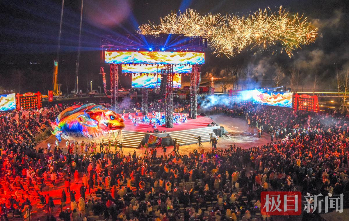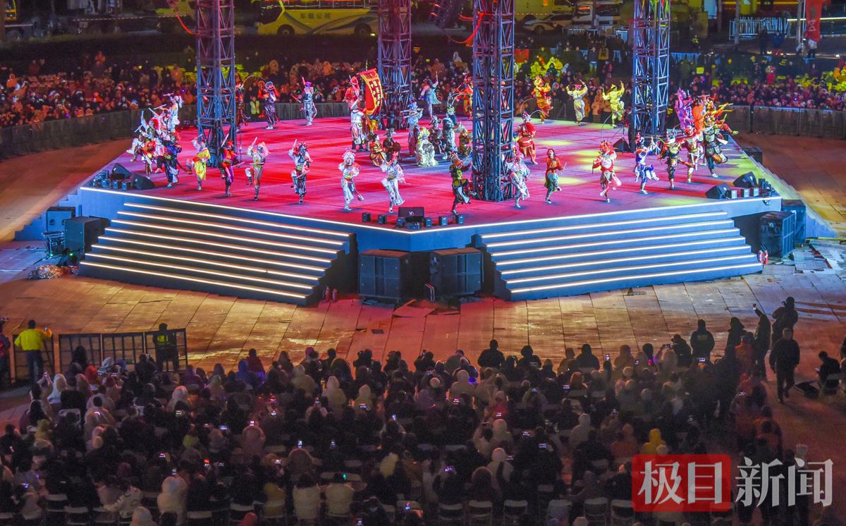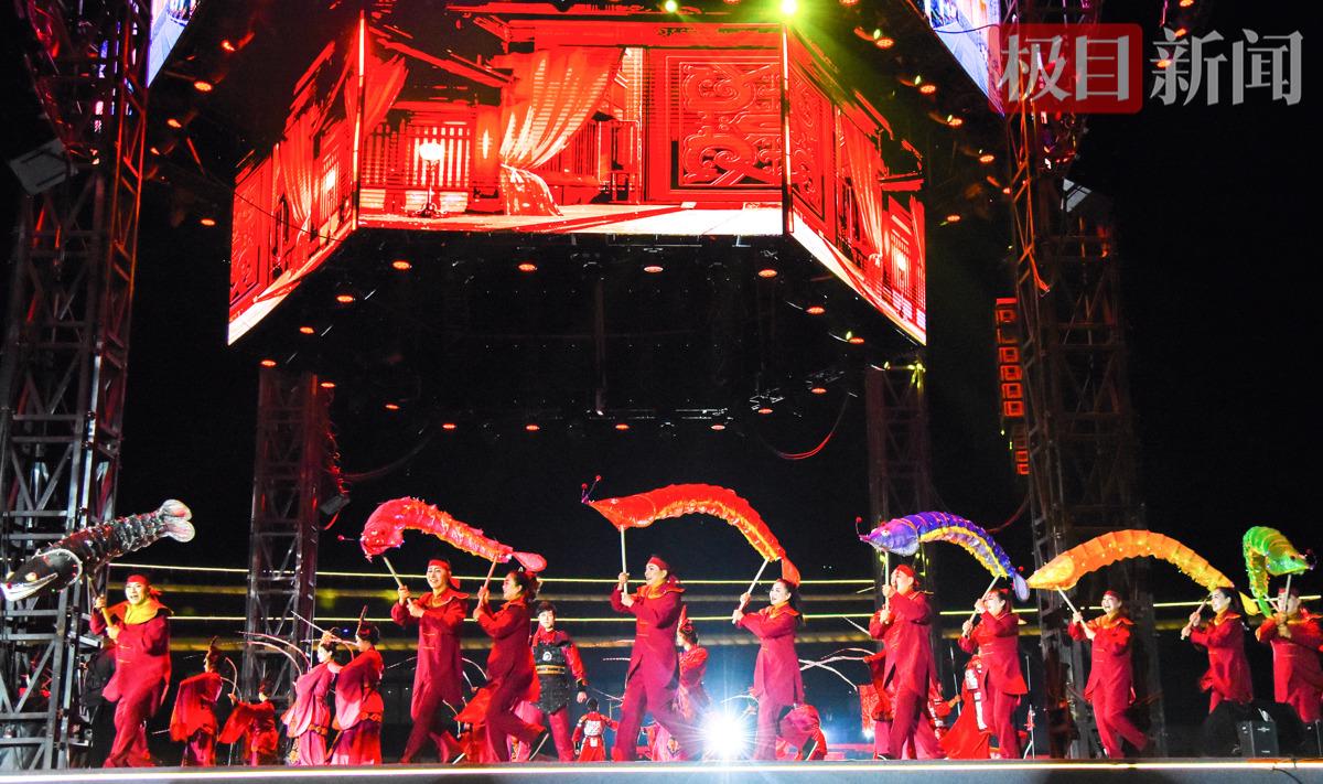 极目新闻记者现场看到,来自湖北荆州的国家级非遗项目五虾闹鲇,五只彩虾与鲇鱼灯穿梭游弋,寄寓着五福临门、年年有余的美好祝福,再现荆楚大地迎春纳福的盛大场面,为观众呈现了楚韵千年的浪漫风采。