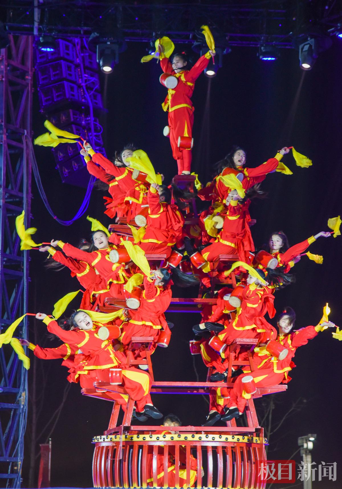 来自山西运城的表演者现场演绎国家级非遗项目高台鼓。(极目新闻记者 黄志刚 摄)