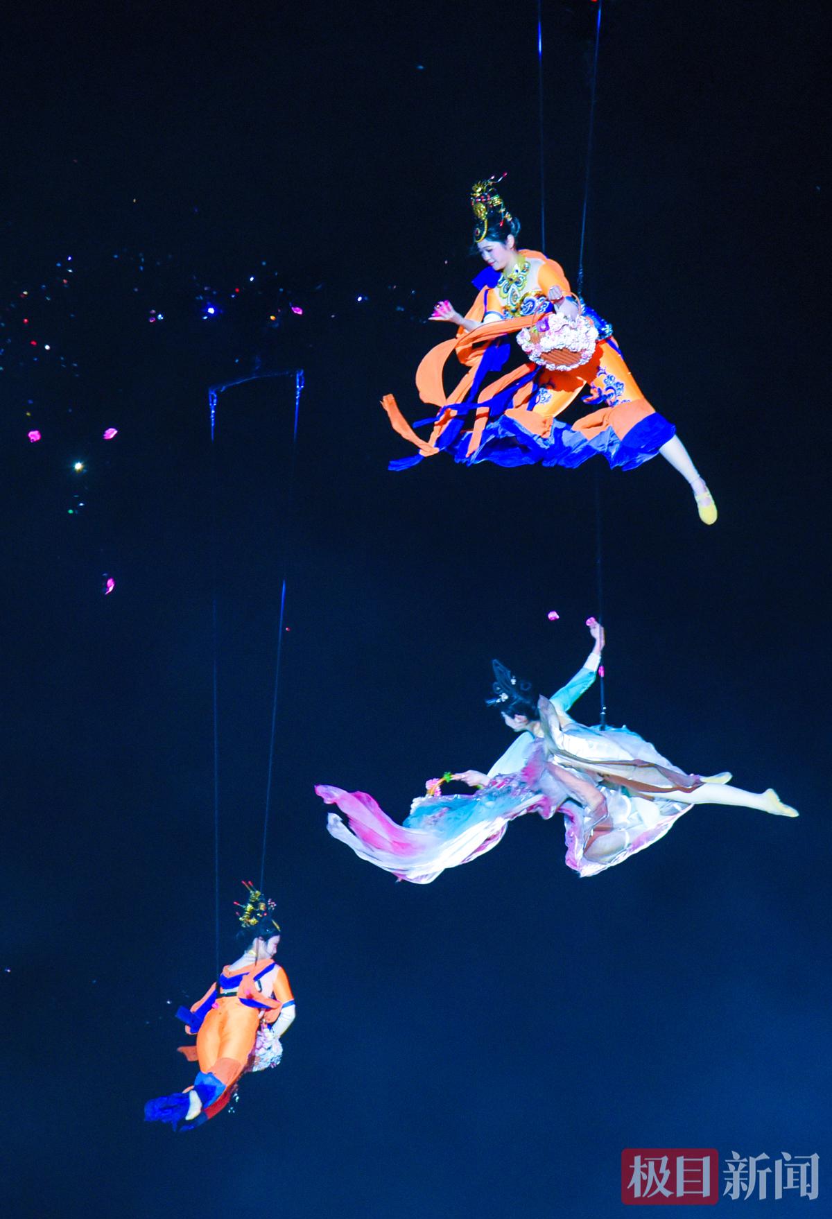 来自甘肃酒泉的敦煌舞者在表演《飞天揽月》。(极目新闻记者 黄志刚 摄)