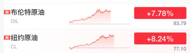 原油价格暴涨8%,美元指数涨超0.7%。