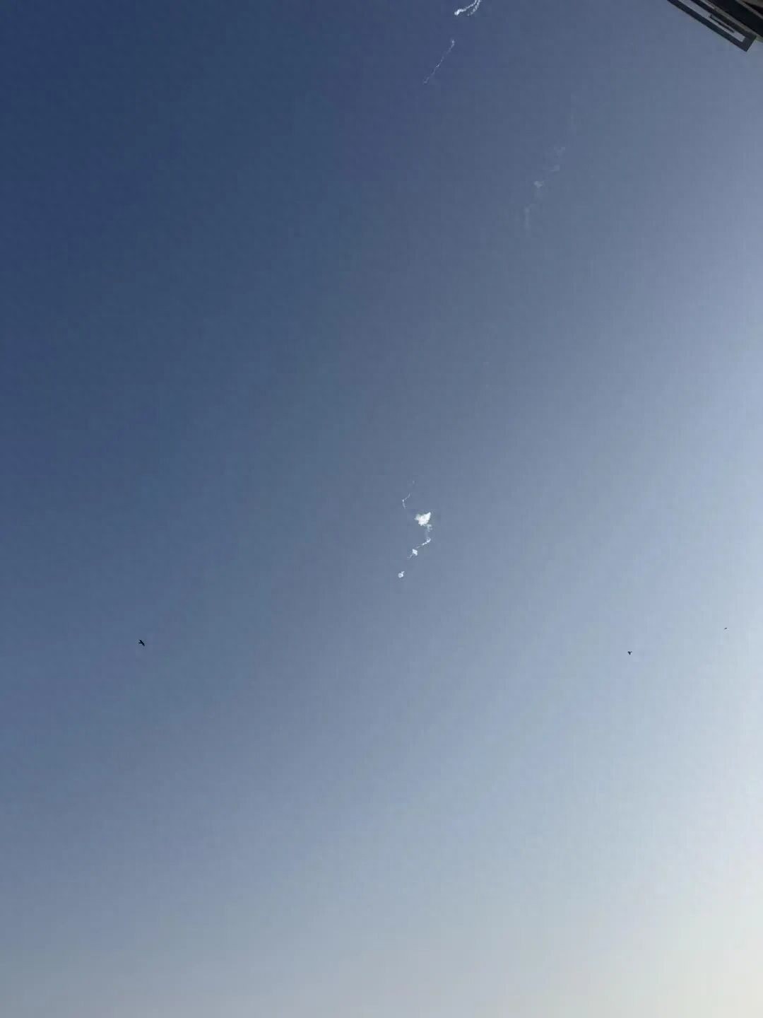 陈婧拍到导弹被拦截。受访者供图。