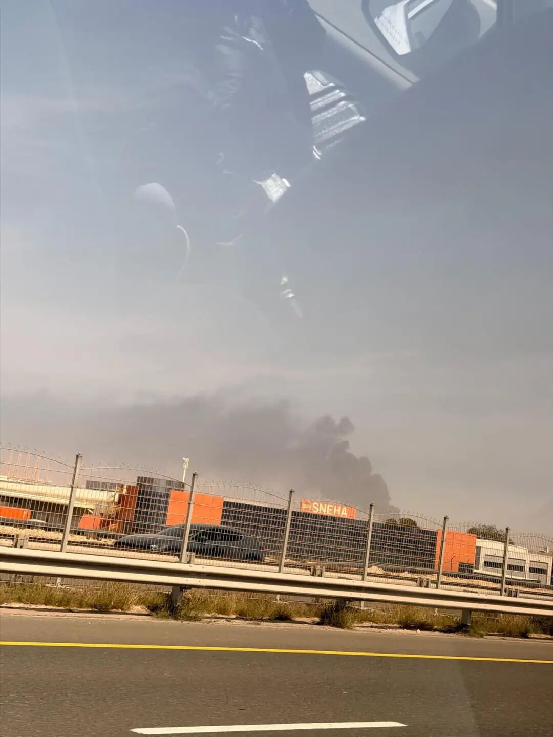 陈婧和同伴路过迪拜棕榈岛,看到不远处冒起黑烟。受访者供图