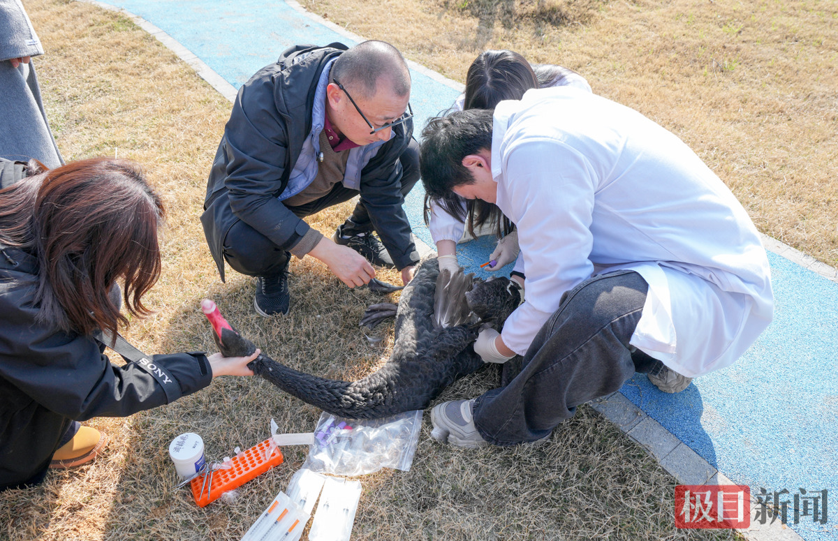 现场,原计划拔一两个毛球做检测,没想到这对“冤家”剧烈反抗,最后只能改为采血。“我们会把血液带回实验室,提取DNA,检测它们的性别。”遗传育种专业博士吴雪莹说道。