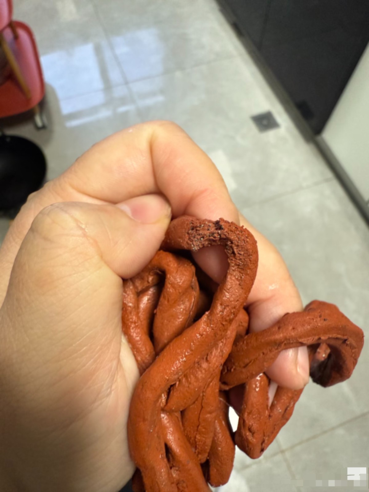 “它那个绳子有点像塑胶的材质,一开始我还以为是吸水导致的。”黄女士说,她后来找过来一把剪刀,把绳子剪开后,发现绳子里面有很多“细密的小点点”,疑似掺了铁砂。