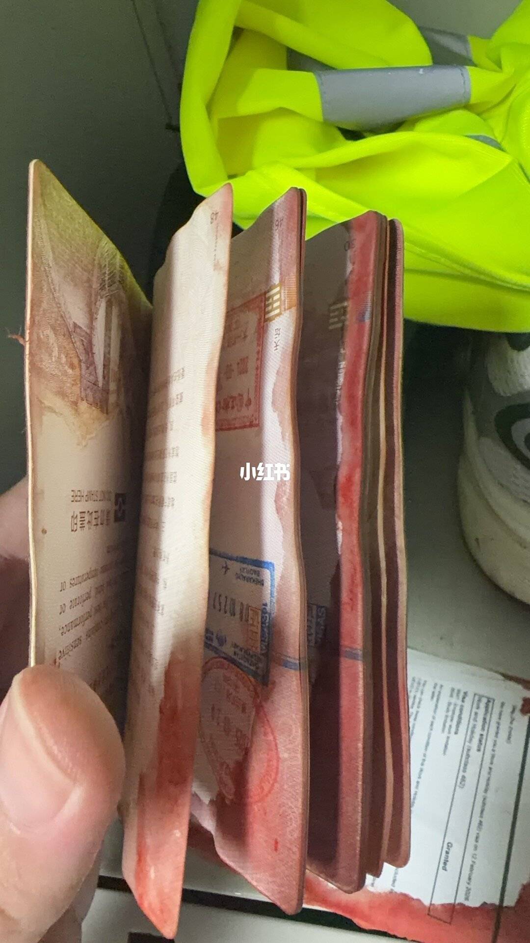 护照被鲜血污损