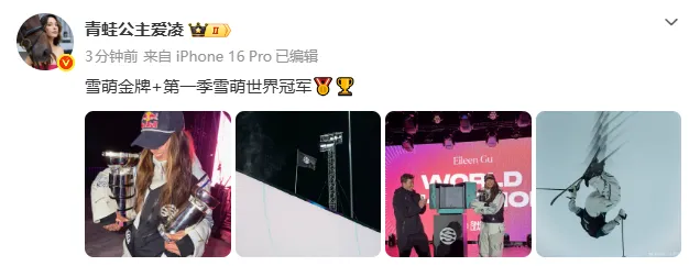 21日早晨,谷爱凌发文分享喜悦:收获雪萌金牌,拿下第一届雪萌世界冠军!雪萌金牌+第一季雪萌世界冠军。