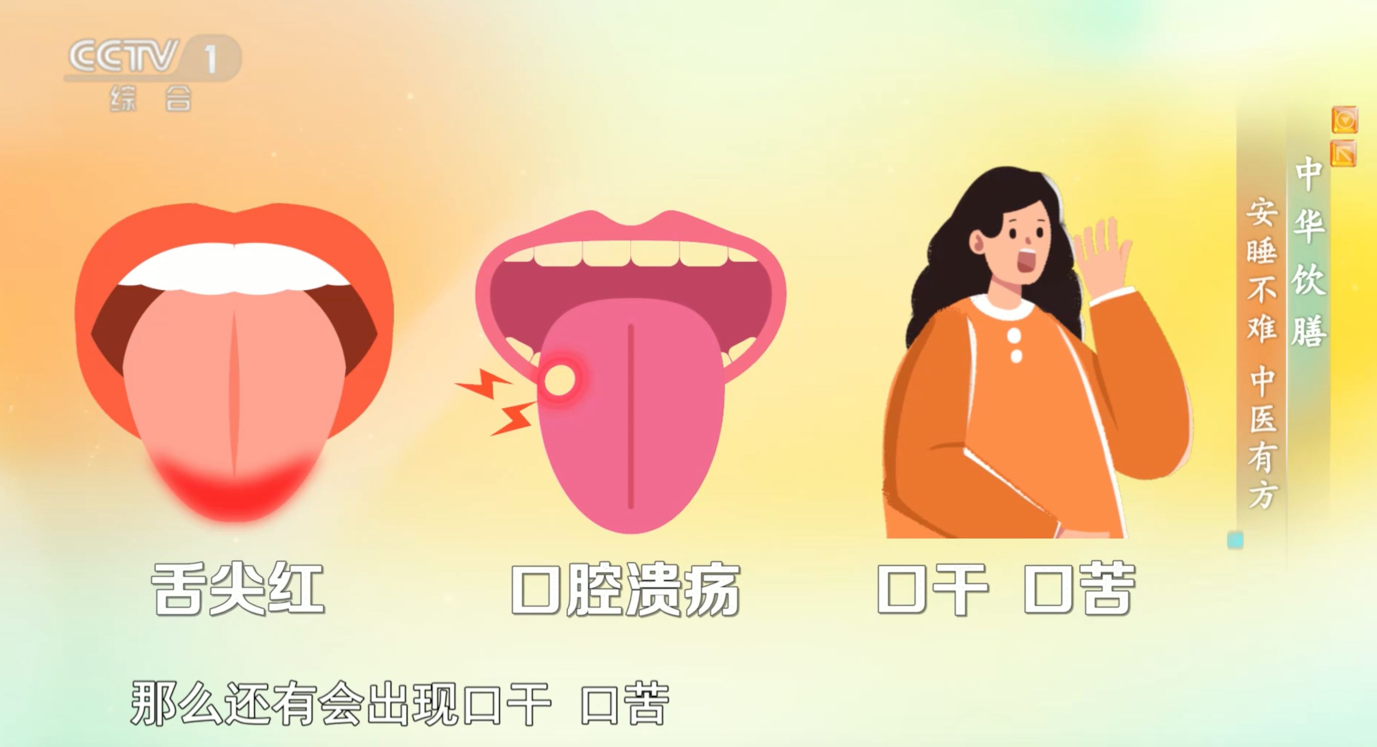 此外,还可能伴随口腔溃疡、口干口苦、脸红、身体燥热、尿黄等表现。