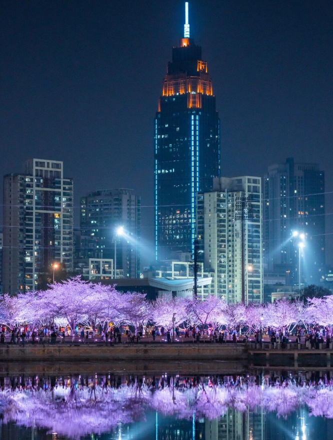 春日赏樱,最是夜樱动人。邀三五好友,漫步西北湖亲水平台,赏光影夜樱,看非遗魔术,于花影婆娑、光影摇曳间,邂逅独属于江汉的春日风雅,留存一段难忘的夜樱美好记忆。