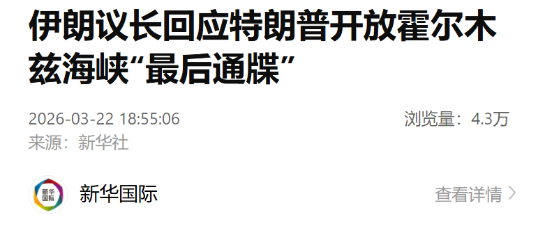 针对美国总统特朗普要求伊朗在48小时内开放霍尔木兹海峡的“最后通牒”,伊朗伊斯兰议会议长卡利巴夫22日说,一旦伊朗的发电站等基础设施成为打击目标,整个中东地区的能源和石油等重要设施都将被视为合法打击目标,并遭到不可逆的摧毁,油价将长期上涨。