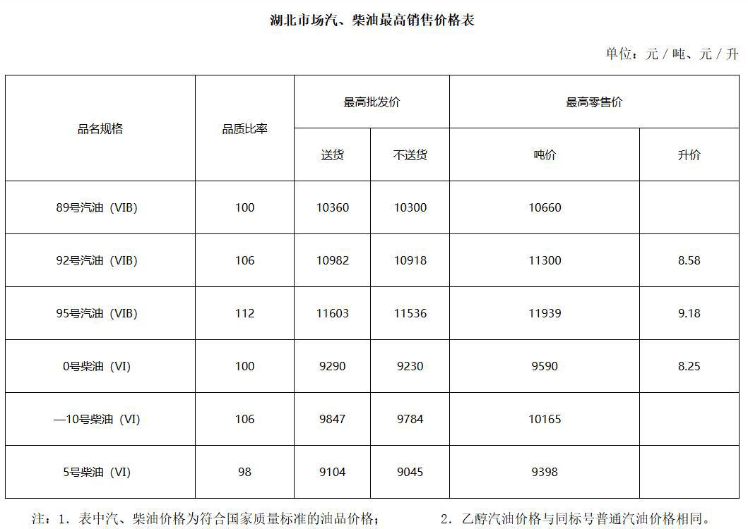 湖北省发改委公告要求,省内各成品油经营企业要严格执行国家价格政策,组织好成品油生产和调运,确保市场稳定供应。