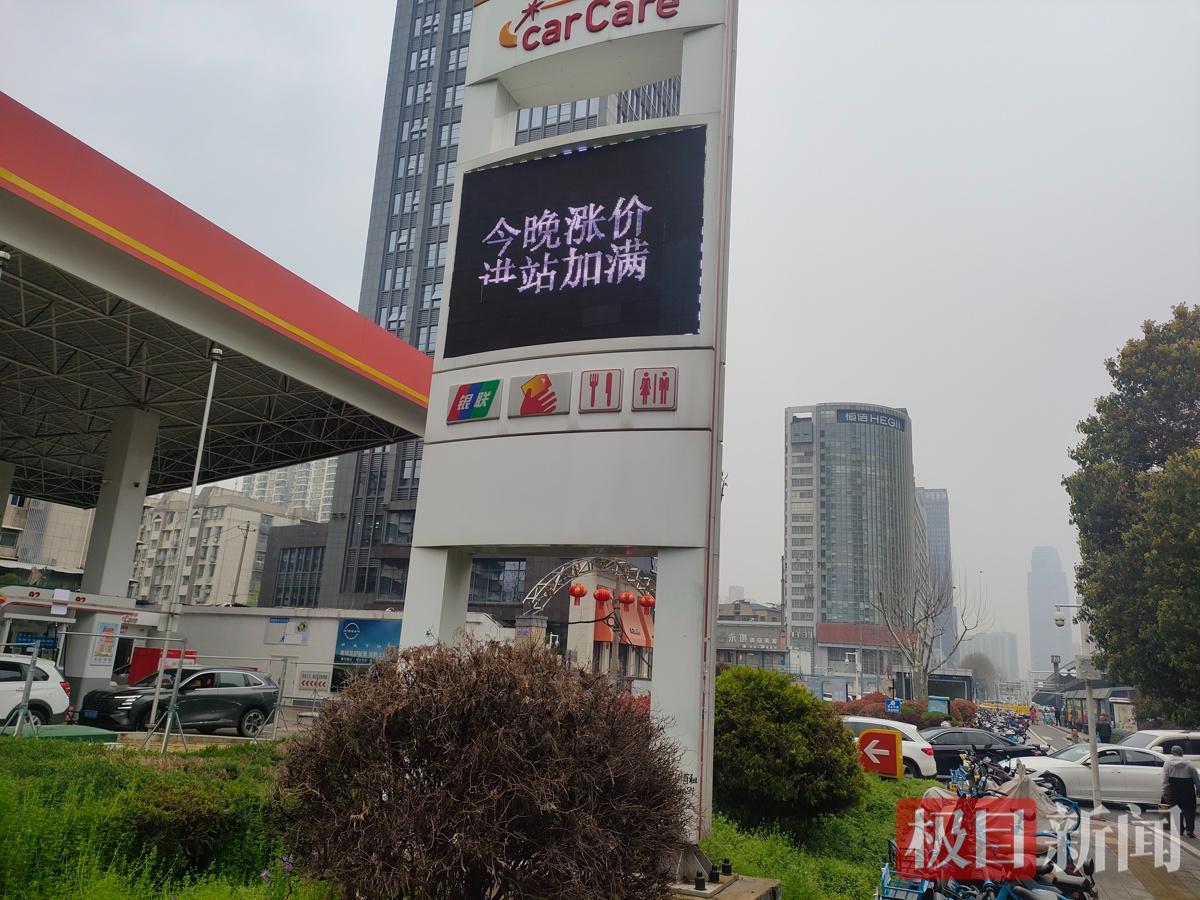 记者注意到,有加油站还在站内显示屏发出提醒:“今晚涨价,进站加满。”