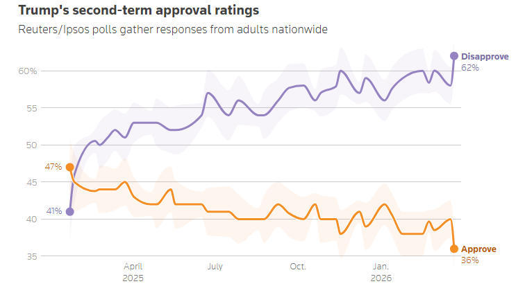 路透社和益普索集团3月24日公布的一项民调显示,美国总统特朗普的支持率从上周的40%降至36%,是其重返白宫以来最低水平。