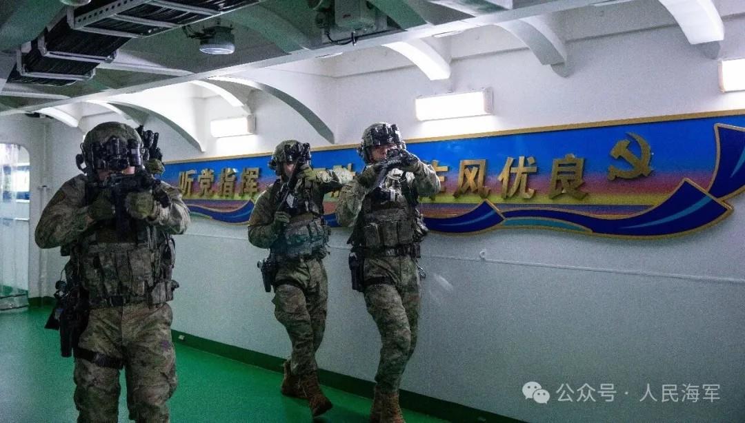 △特战队员进行舱室搜索