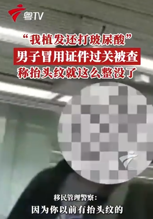 据广东广播电视台3月26日报道,深圳罗湖口岸,一男子冒用证件过关被查,被移民管理警察问及本人为什么和照片不符,不仅谎称曾经植发,还辩称“今天刚打玻尿酸”,所以没有抬头纹。