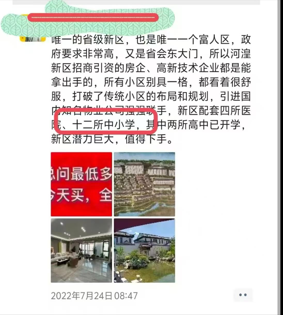 李女士称,早在2020年前后,海东市河湟新区通过各媒体曾对外宣称新区规划设置大、中、小学校共12所,其中大中专院校2所,公立高中1所,私立高中2所,九年一贯制学校5所,小学2所。开发商也是持政府部门对外公布的信息对他们业主反复宣讲,现在这些学校很多没有建。