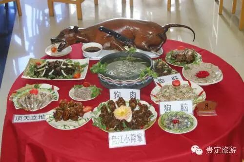据贵定县人民政府官网2016年4月19日文章介绍,盘江狗肉历史悠久,最早可追溯至明清时期,当时狗肉是滋补品。近几十年来,盘江狗肉逐渐形成产业化,已名扬国内外。当时,盘江有狗肉餐馆29家,能一次性接待客人5300余人。