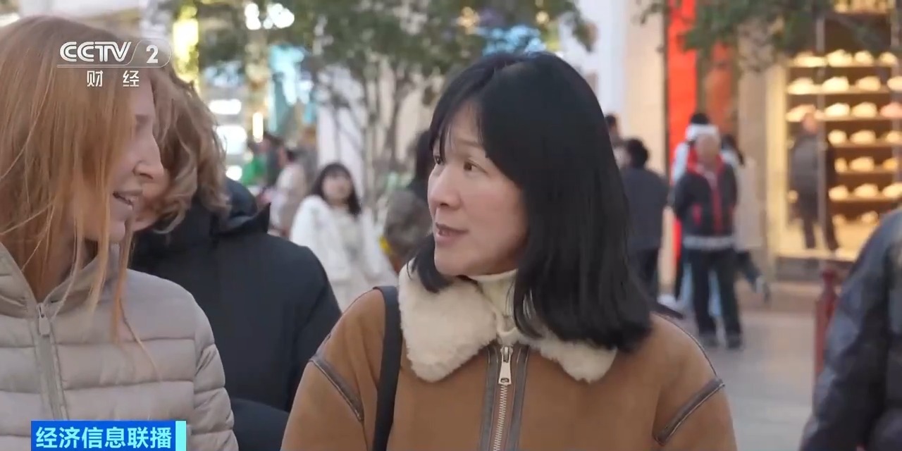 在上海的南京路步行街,来自意大利的4人家庭团正在导游带领下游览。女儿奥诺拉告诉我们,他们是通过社交媒体了解到中国免签政策后,专程来体验“中国之旅”的。