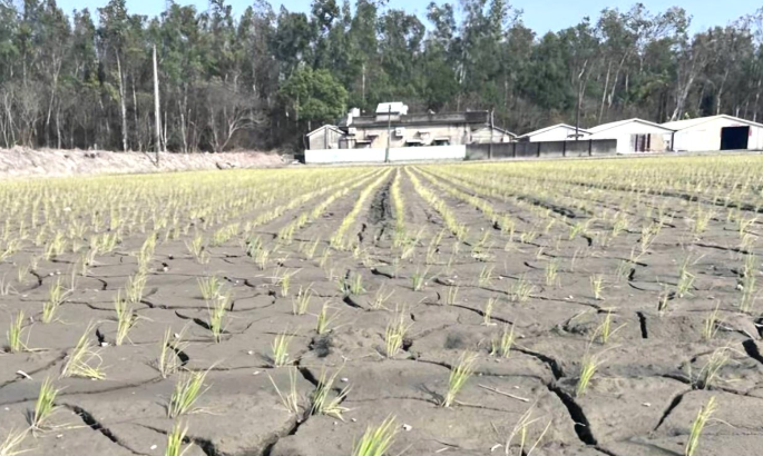 近日,台北市大安区稻田干涸龟裂。图源:台媒