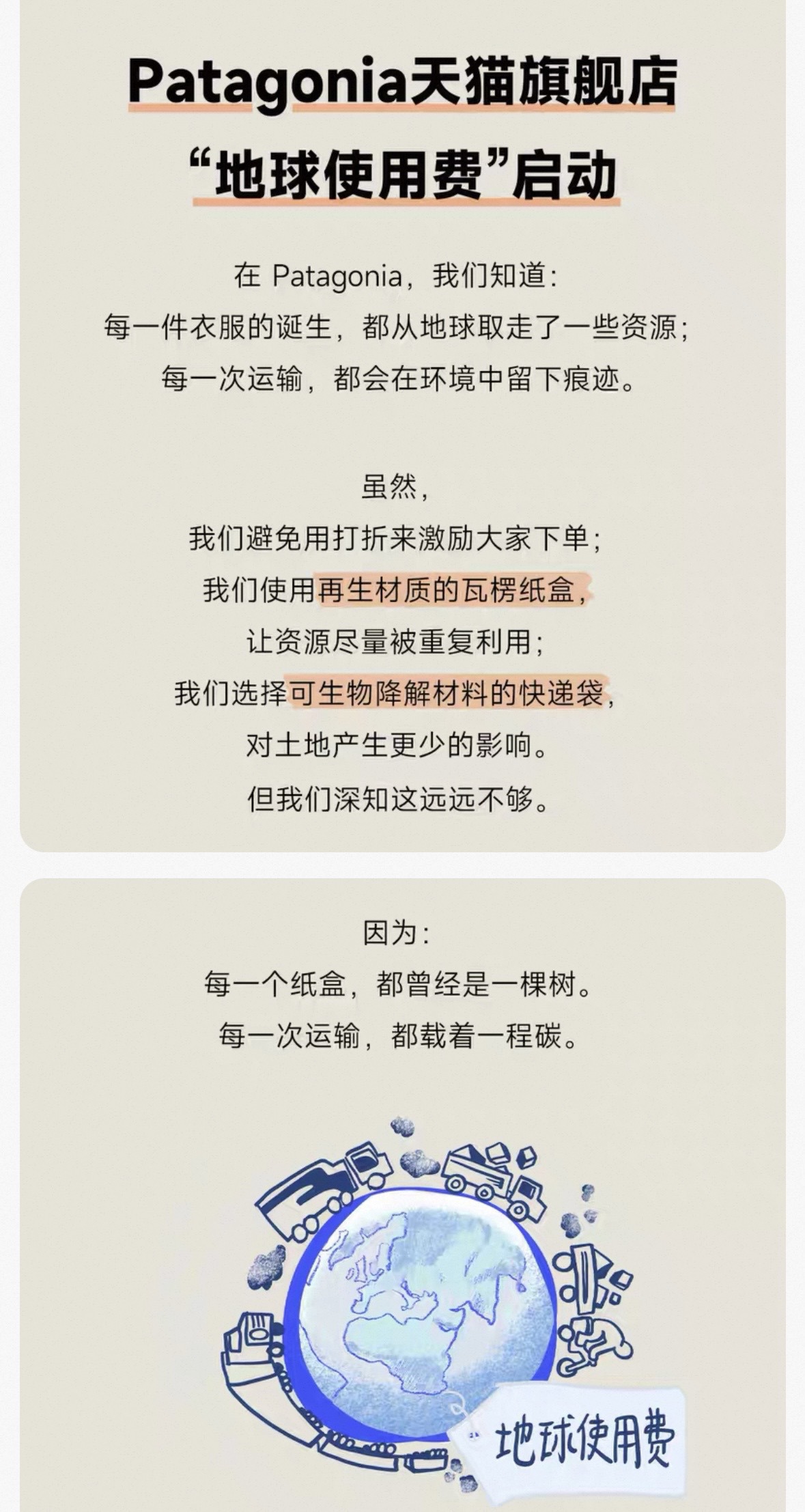 美国品牌巴塔哥尼亚将收取“地球使用费” 来源:天猫旗舰店截图