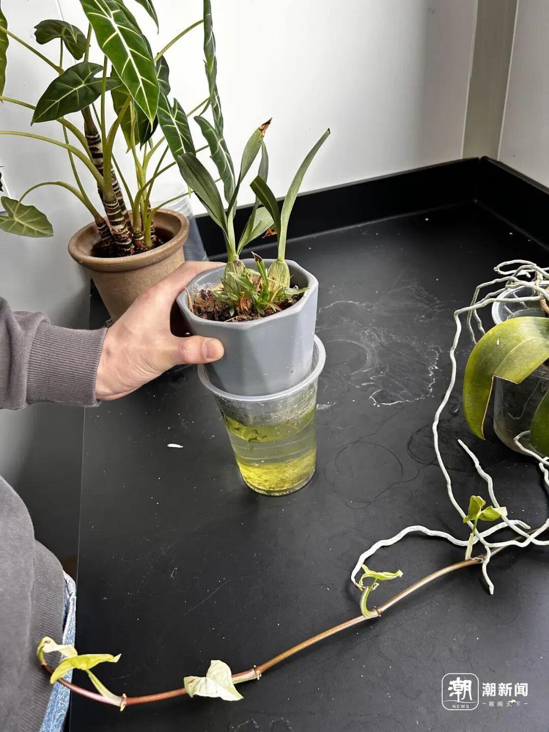 可能滋生蚊虫的水培植物。记者 陈朴风 摄
