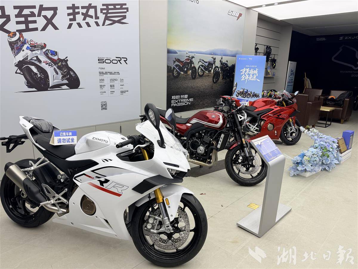 湖北日报讯(记者杨文漪、通讯员林园芳)4月2日,记者走进位于武汉东西湖区的张雪机车门店。作为张雪机车全国首批门店之一,这里还未进门,便听见阵阵引擎轰鸣与车友的欢笑声交织在一起。店内,数位摩托车爱好者正轮流试骑一台崭新的三缸车型——冠军车同款820RR,售价43800元。店长易磊向记者透露:“今天下午这批车才刚刚开始试驾。之前一直是工程样车状态,前两天才调试完成,工厂今天通知我们可以试驾了。”
