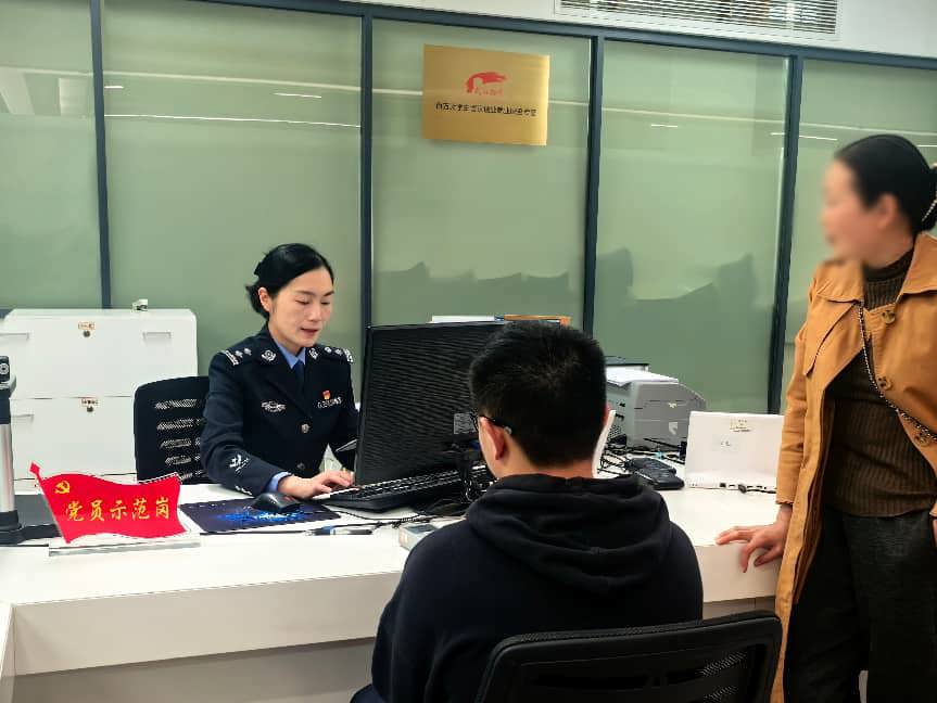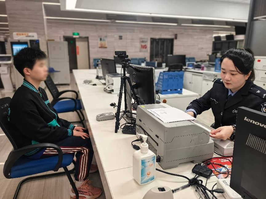 当晚8时,张同学准时抵达窗口,校服还没来得及换下;8点10分,任同学也背着书包匆匆赶来。此时的窗口,没有下班的冷清,只有提前备好的材料、调试完毕的设备,和早已等候多时的民辅警。信息核对、人像采集、指纹录入、材料提交、加急通道报备等,两人全程高效衔接,耐心引导两位学生。为了拍出符合标准的证件照,吴军、庄畅畅反复调整拍摄角度,细心帮孩子整理衣领,确保一次通过;遇到指纹录入不顺畅的情况,她们也没有半点催促,只是轻声安抚“别着急,慢慢来”。随着任同学的申请信息成功提交,两名考生的身份证加急办理业务全部顺利完成。拿着受理回执,两个孩子反复说着“谢谢阿姨”,悬着的心终于落了地。