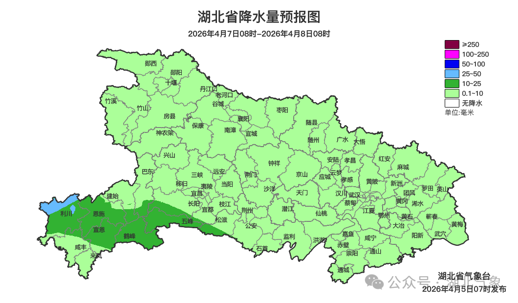 【湖北省未来三天预报】4月6日08时-7日08时,鄂西北西部、鄂西南、江汉平原、鄂东南阴天有小雨;其他地区多云。最高气温22~26℃,最低气温13~17℃,偏北风3级、阵风4到6级。4月7日08时-8日08时,鄂西北南部、鄂西南、江汉平原西部阴天有小到中雨,局地大雨;其他地区多云转小雨。南部局地伴有雷电。最高气温18~24℃,最低气温12~17℃,偏北风转偏东风2到3级、阵风4到6级。4月8日08时-9日08时,鄂西南、江汉平原、鄂东北阴天有中到大雨,局地暴雨;其他地区阴天有小到中雨。东部和南部部分地区伴有短时强降水、雷暴大风等强对流天气。最高气温鄂东南21~25℃、其他地区17~21℃,最低气温12~17℃,偏东风转偏北风2到3级、阵风5到8级。