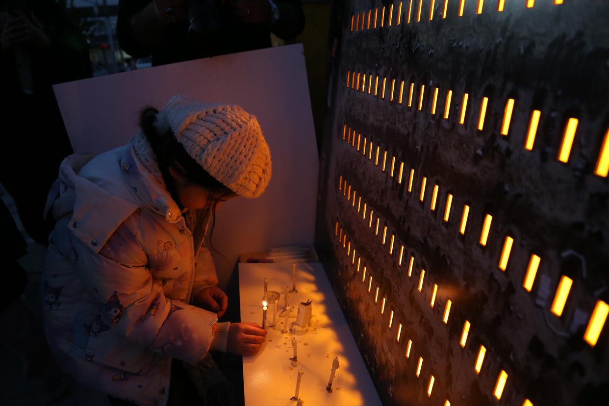 4月6日,在伊朗首都德黑兰市举行的悼念活动现场,人们点燃蜡烛悼念遭美以空袭遇难的米纳卜小学学生。新华社记者 沙达提 摄