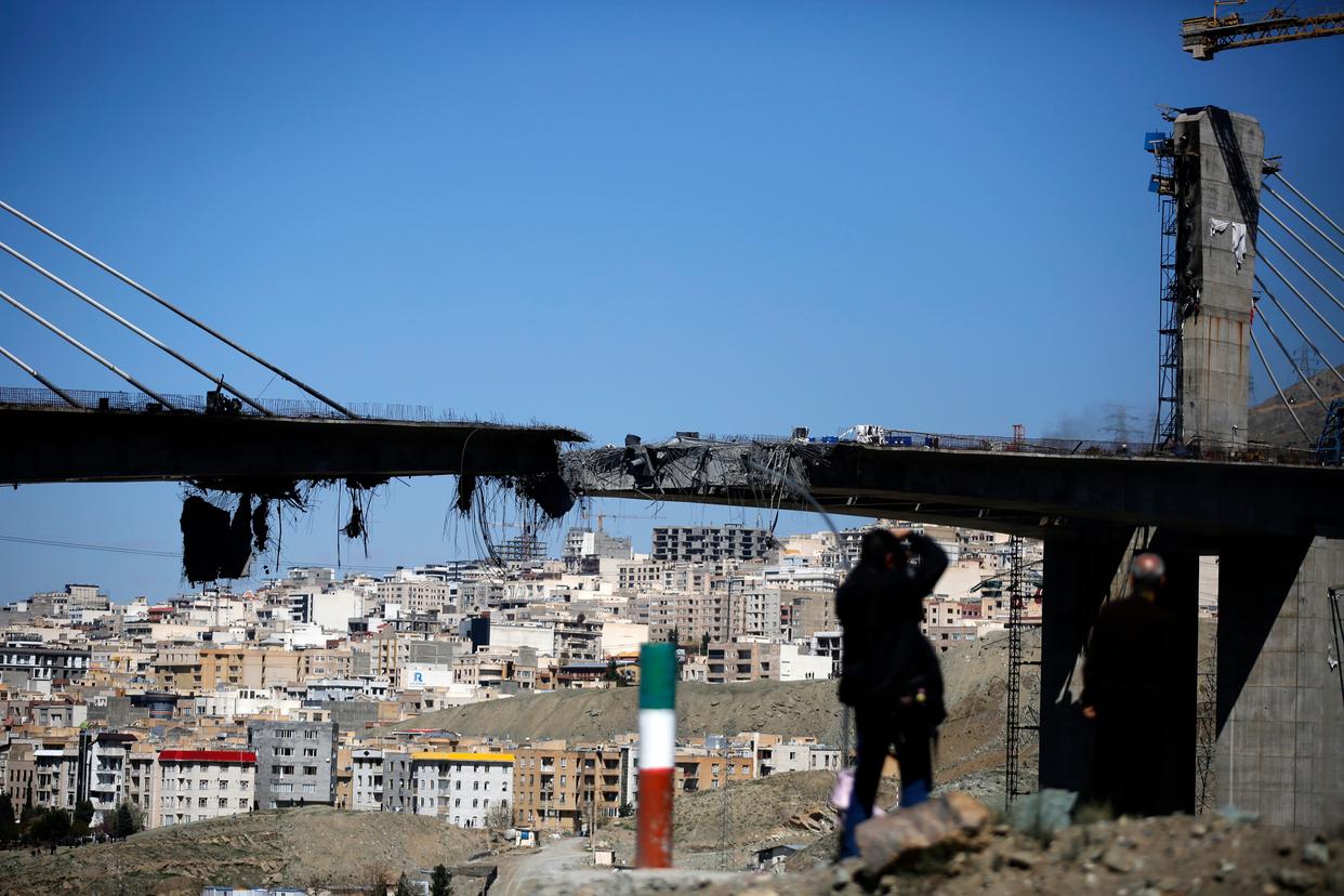 这是4月3日拍摄的伊朗卡拉季市贝伊克公路桥遭空袭受损状况。大桥2日遭美国和以色列两次空袭受损。新华社发