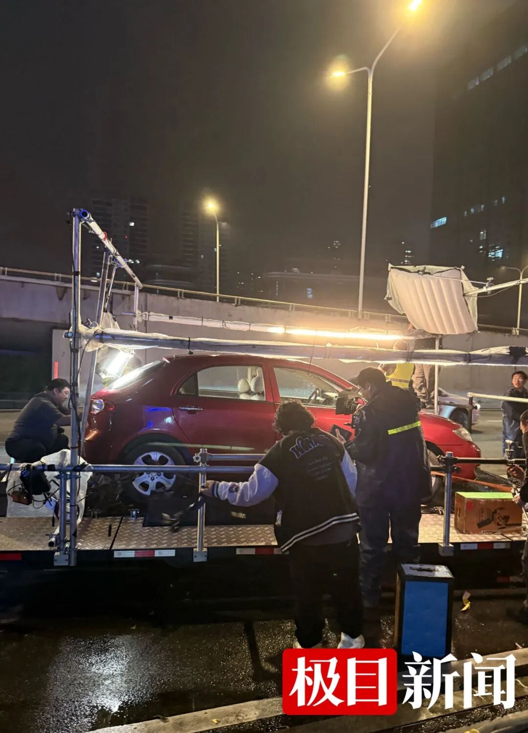 4月9日晚10时许,不少江城市民守在武汉武昌岳家嘴一座天桥附近,围观电影《寻子遗迹》拍摄。当看到女主角章子怡现身时,苦等多时的市民向极目新闻记者感慨:“没白等。”