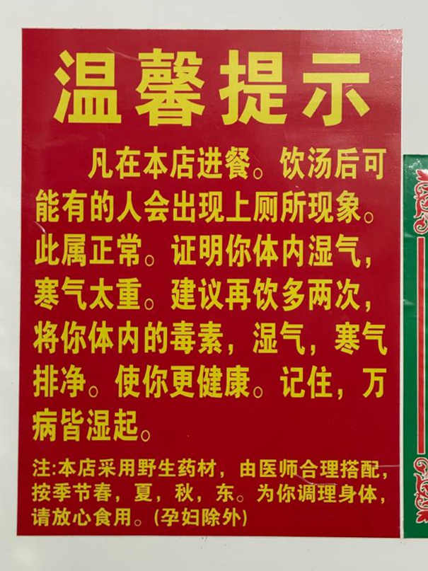 “喝汤可能拉肚子,此属正常”