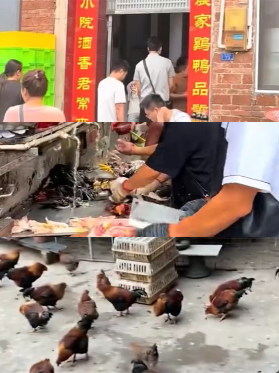 他一边疯狂宰鸡,一边被游客的镜头包围。