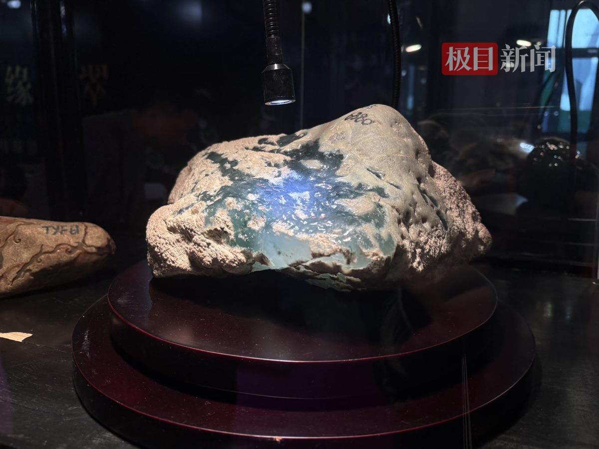 除成品外,翡翠原石也现身展会,一块估价高达2600万元的翡翠原石吸引众人目光。