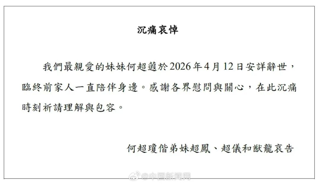 据港媒报道,“赌王”何鸿燊女儿、信德集团执行董事何超蕸今日(12日)逝世,临终前家人陪伴在侧。由何超蕸出任执行董事的信德集团,沉痛哀悼何超蕸逝世,并附上家人通告。