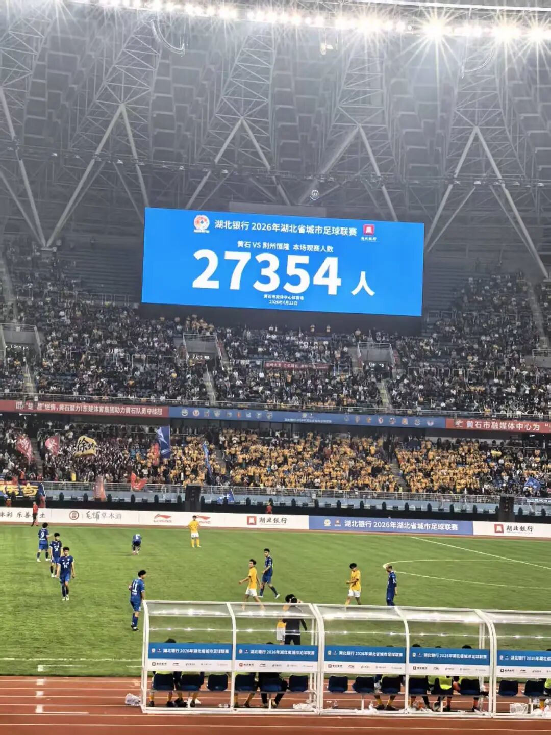 场内外氛围感直接拉满,开赛前几小时黄石奥体中心周边就挤满球迷,各色队服、彩绘脸贴等氛围感十足。赛事期间,黄石奥体中心周边的餐饮、住宿、零售等行业也迎来消费高峰。不止省内的球迷观众,来自九江、泰州、岳阳、常德等地的球迷也前来为“楚超”加油,更带动了赛事经济的火热升温。