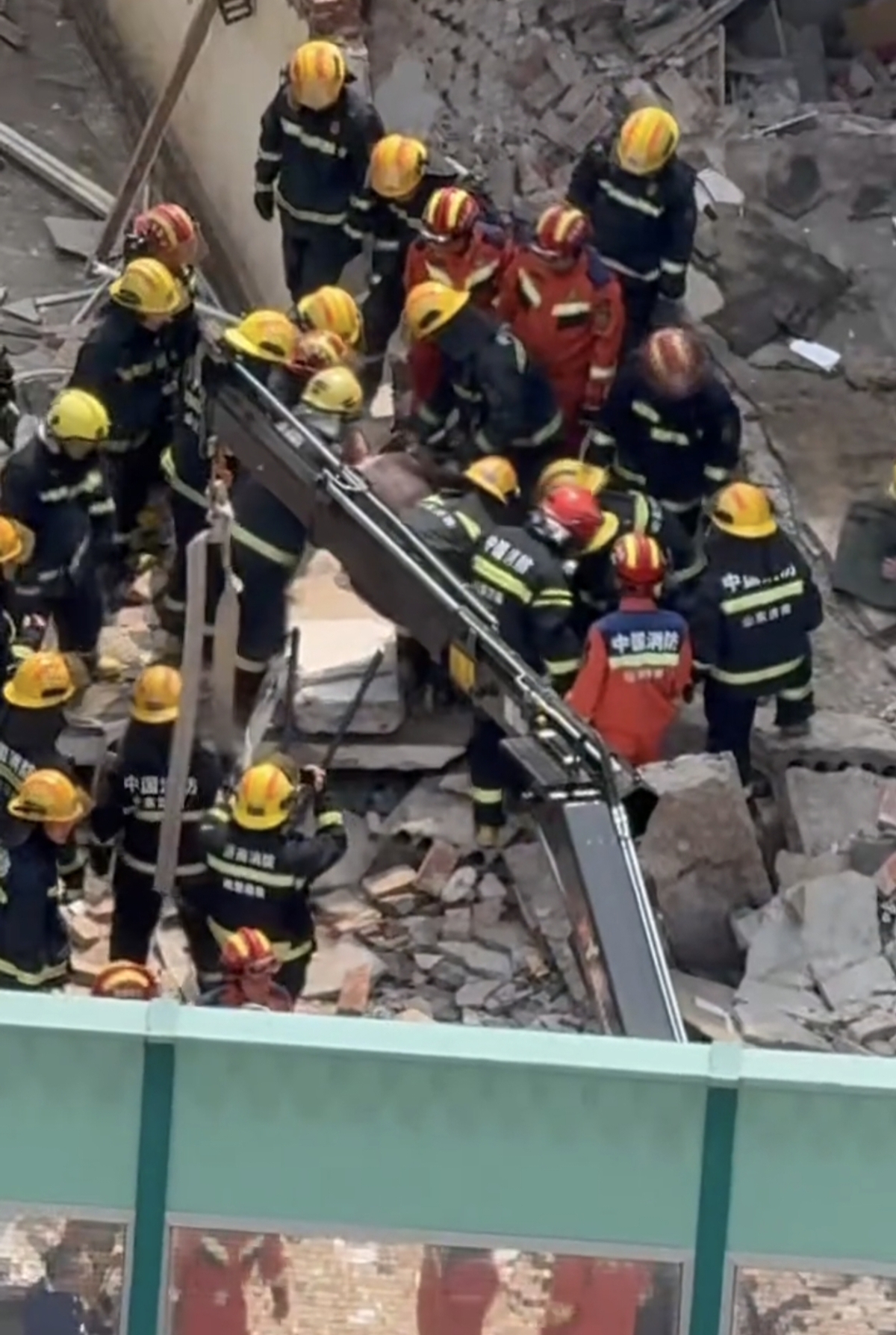 另有附近住户拍摄的视频显示,多辆消防车抵达现场,约20名消防员在废墟中开展救援,有伤者从废墟中被抬出。