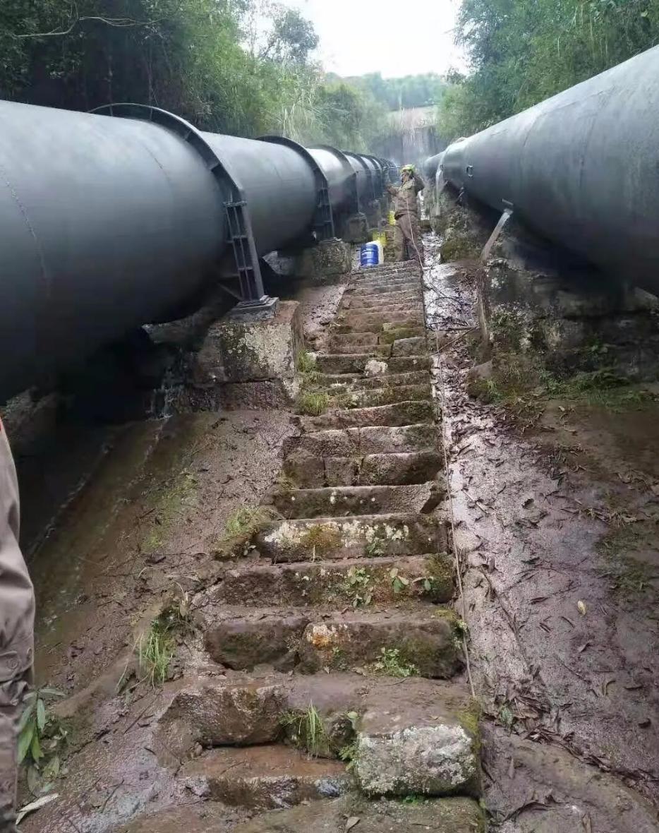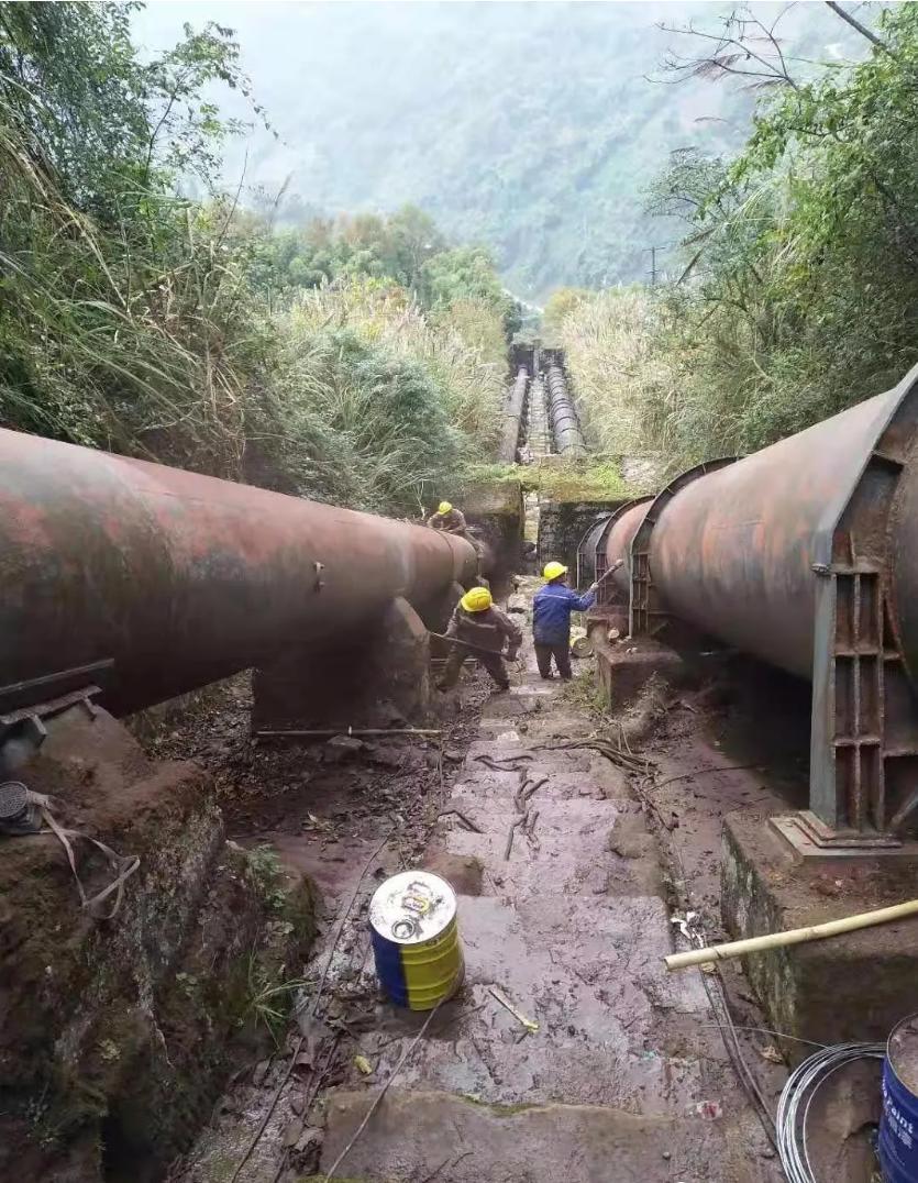 2020年12月,重庆一企业发布了青烟洞四级站的金属压力管道除锈防腐相关作业图片,显示该电站的引水压力管道为明管,露天铺设在陡峭的山间,管道直径为2米左右,工作人员将管道除锈并喷漆。