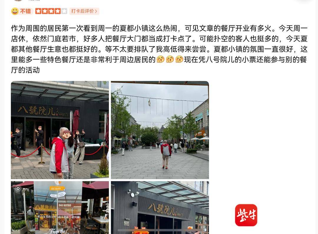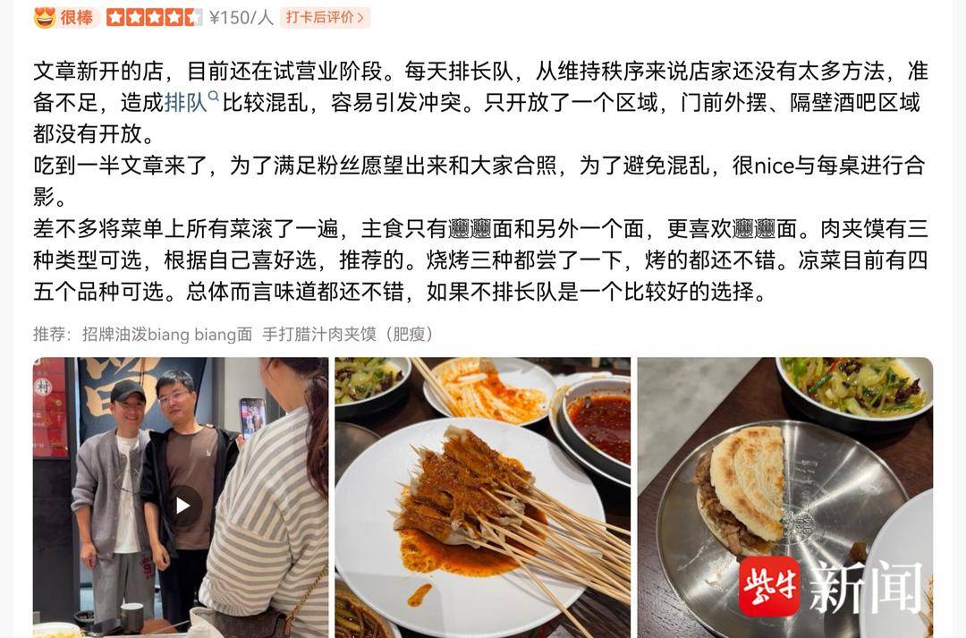 还有网友表示,每天排长队,店家准备不足,导致排队混乱,容易引发冲突,但文章亲自出面,为满足粉丝需求和大家合照,赢得好评。“总体而言,味道都还不错,如果不排长队是一个比较好的选择。”有网友下午两点多开始排队,排到快七点才落座。“排队的人很多,大部分是奔着文章来的。”