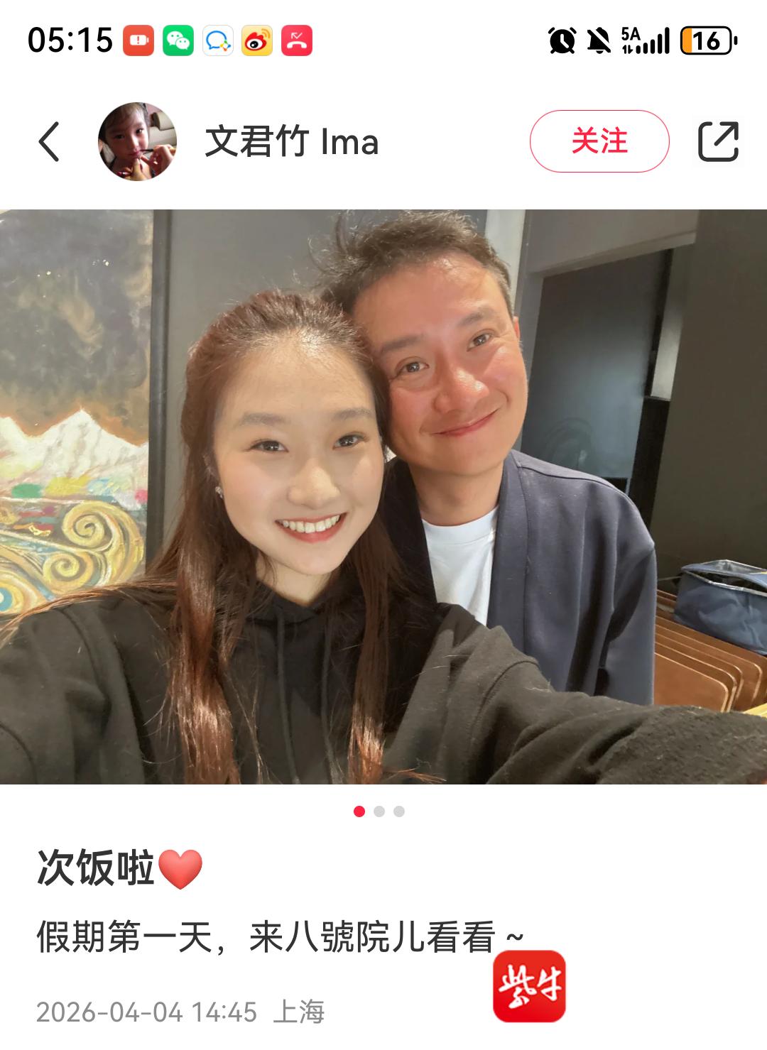 在饭店正式开业前,文章的女儿文君竹就已经来尝过鲜了。 她成了爸爸饭店的第一位顾客。 文君竹今年17岁,父女俩感情一直很好。 她在自己的社交账号上晒过“八号院儿”的照片,包括店里的茶杯和菜品。
