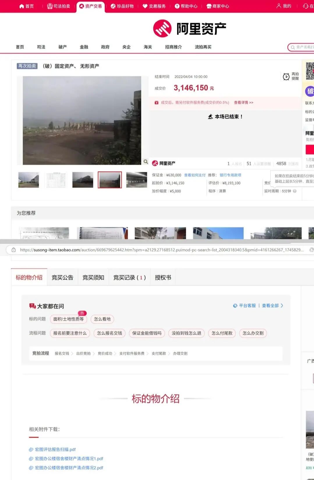酒厂以314万多元拍得土地(图源:拍卖网页截图)