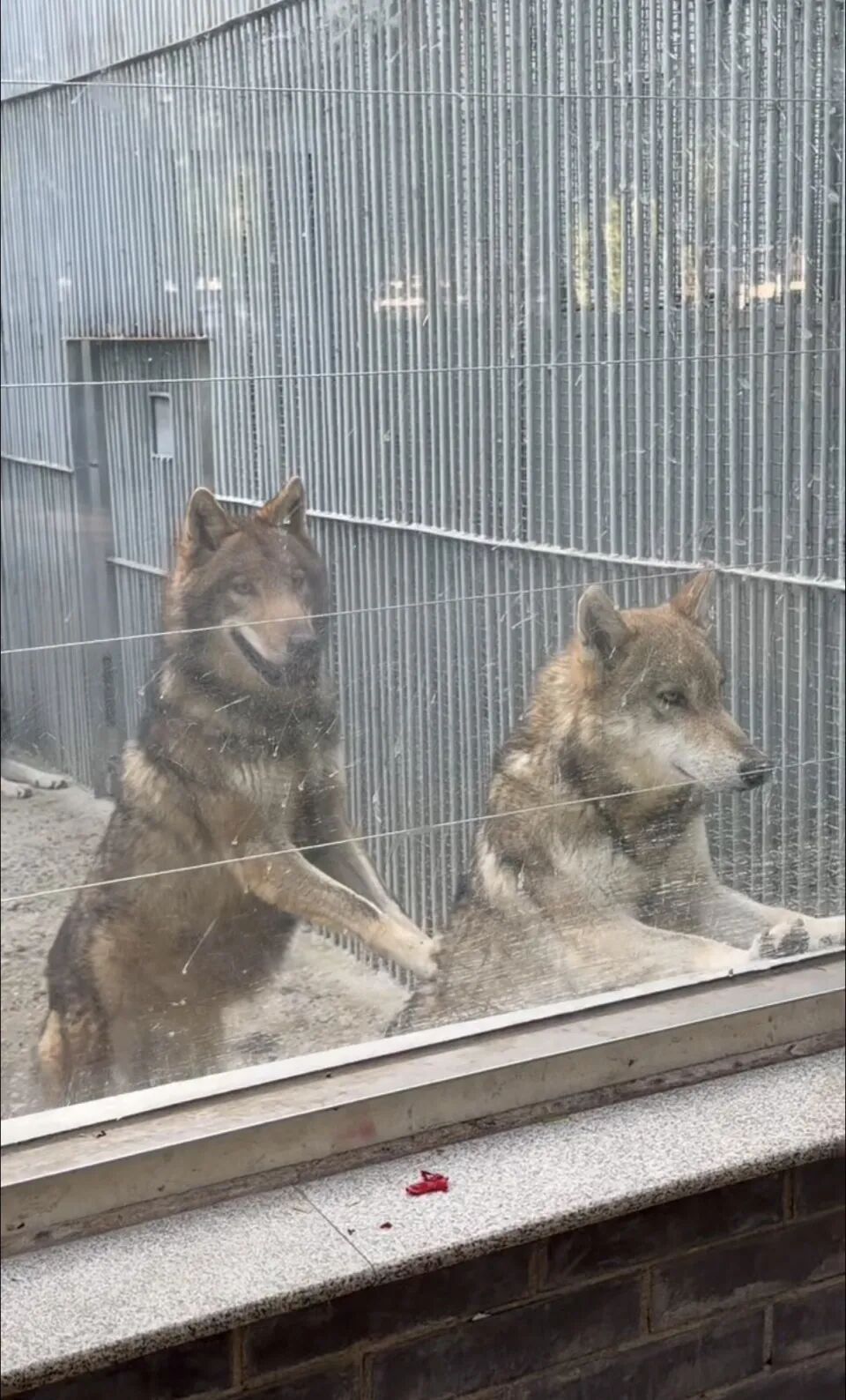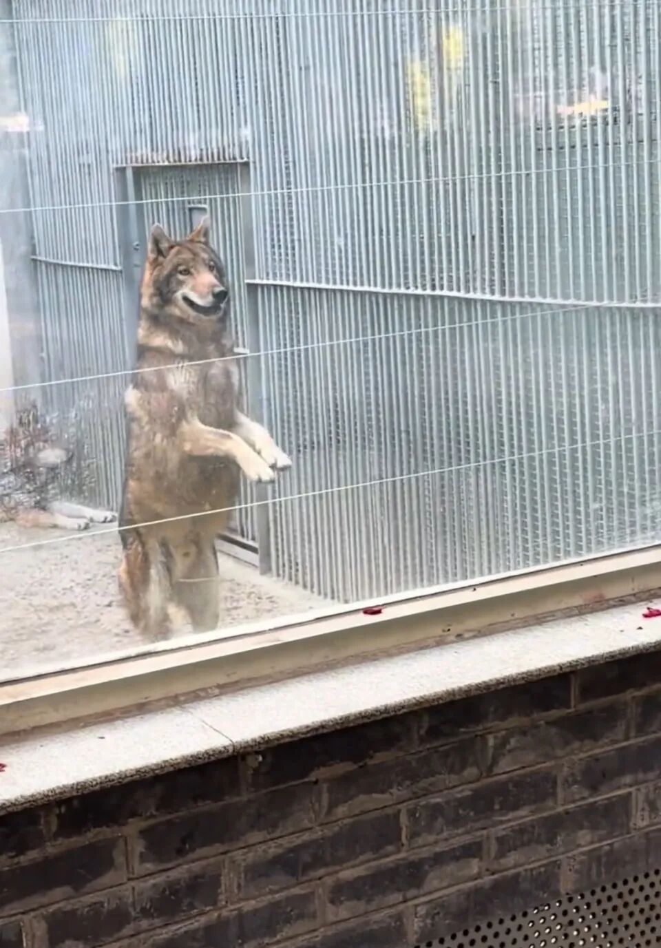 近日,有游客前往河南省平顶山市河滨公园动物园游玩时,发现狼舍里的狼见到玻璃屏障外的游客时,就后腿站立,两只前爪抱在一起微微晃动,面向游客有“作揖”的动作。