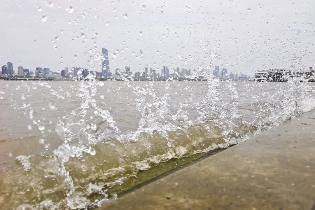 4月20日,武汉武昌江滩,江水拍打岸边激起大浪。(湖北日报全媒记者 柯皓 摄)