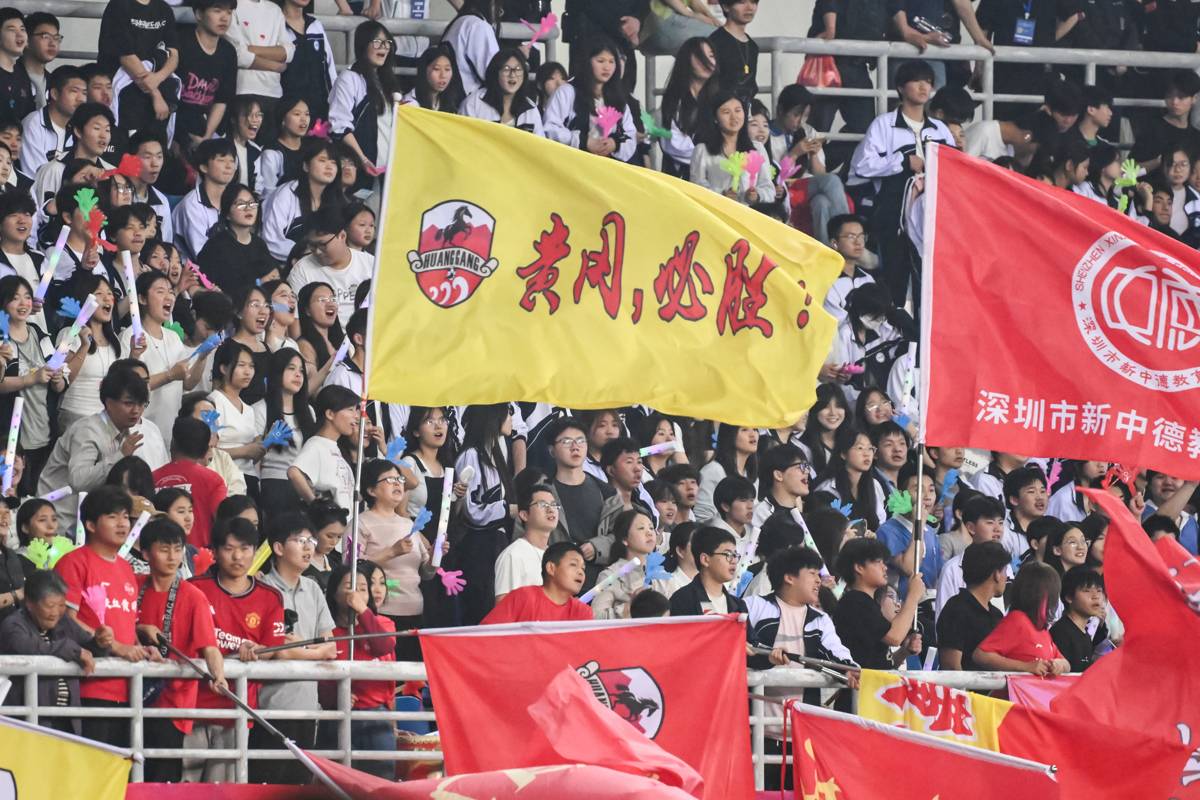 4月18日晚,黄冈球迷为主队要起呐喊助威。(湖北日报全媒记者 任勇 摄)